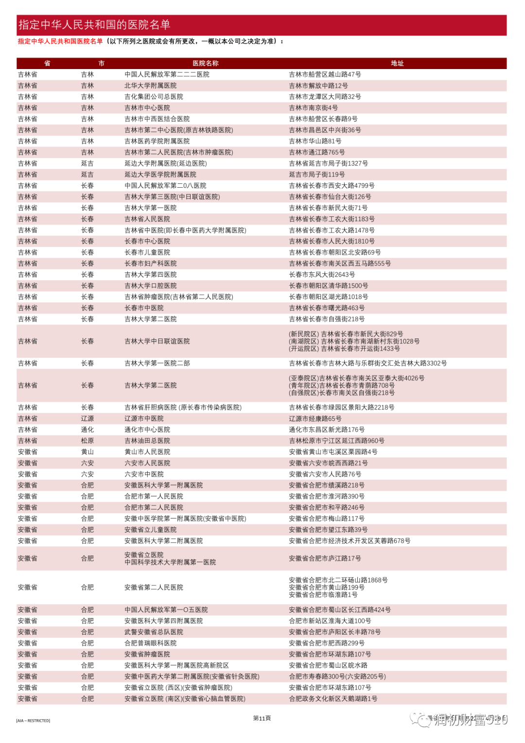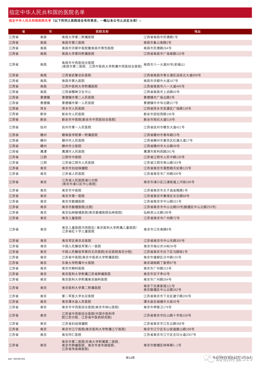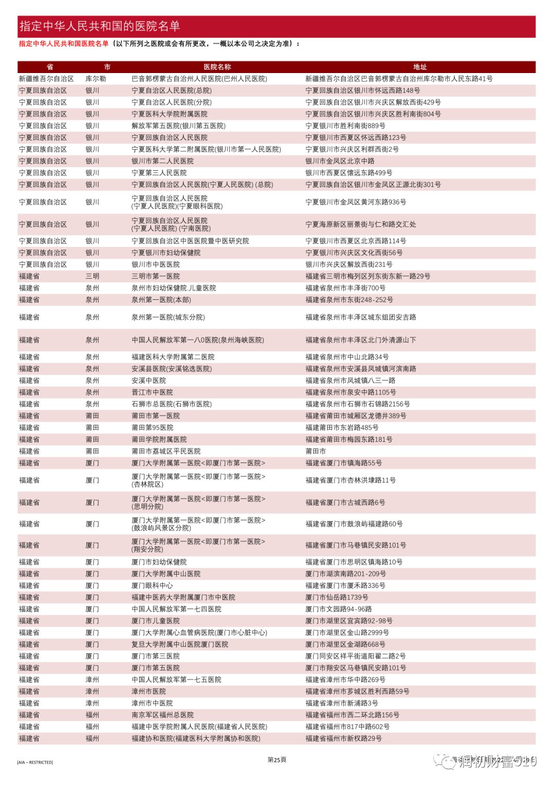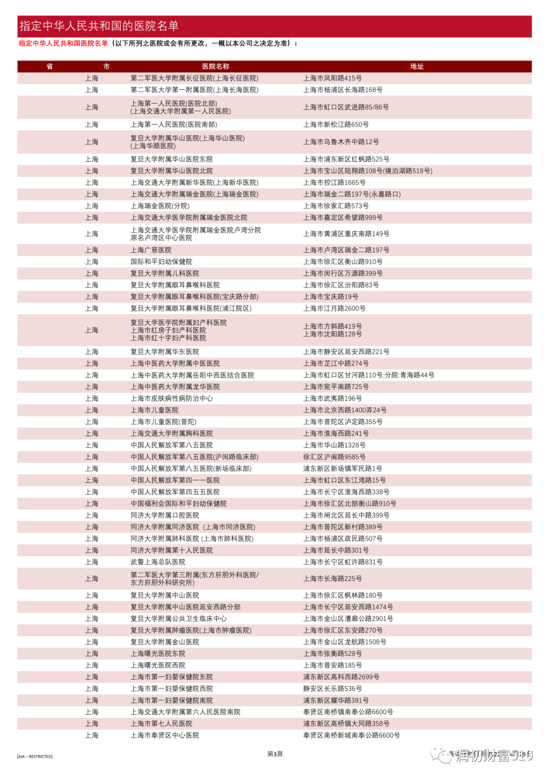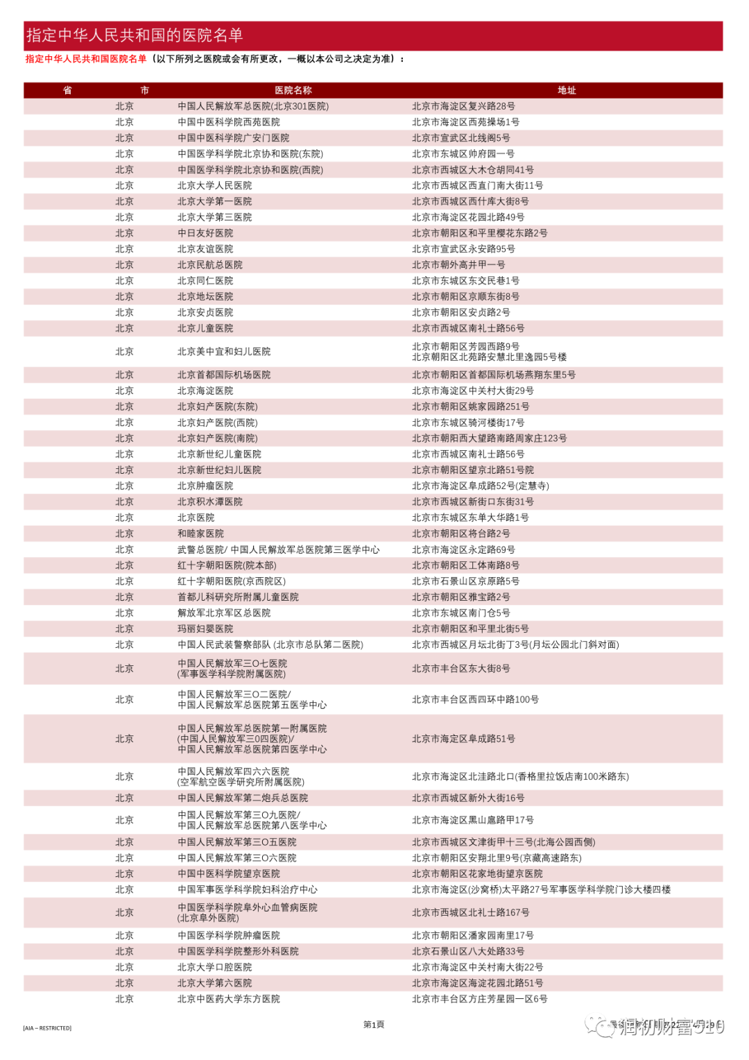 以下是香港友邦国内指定医院名单(只适用于高端医疗保障产品*) :