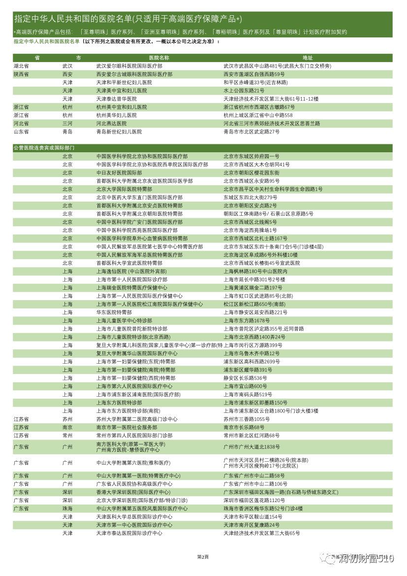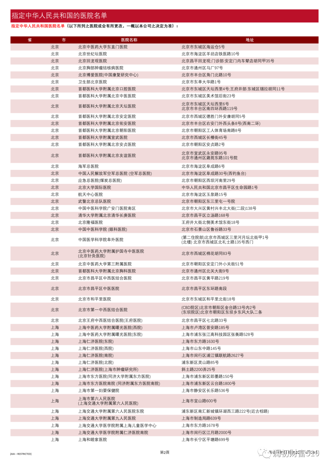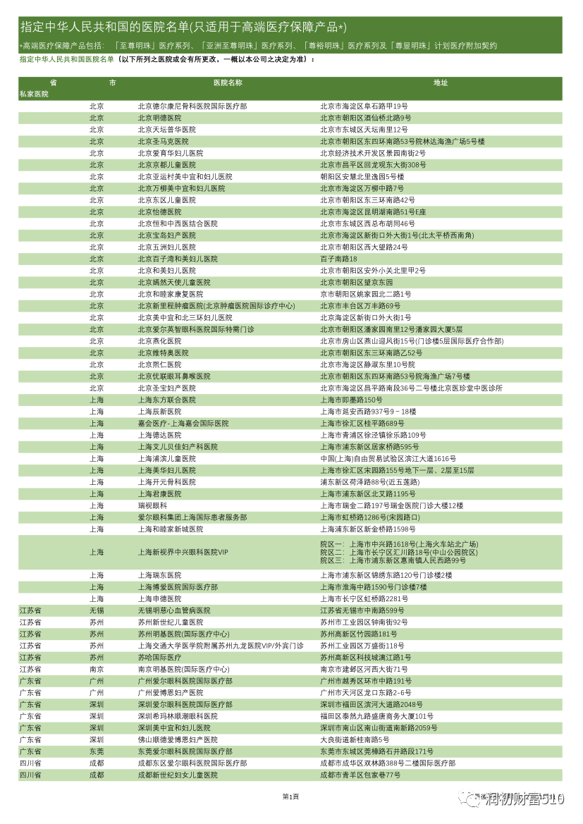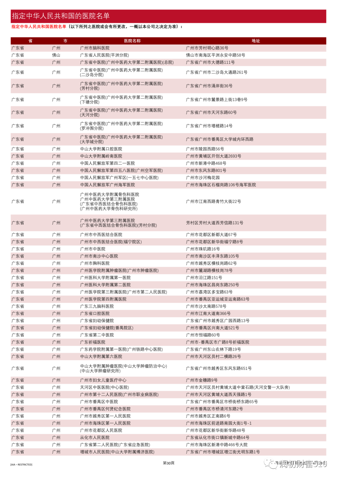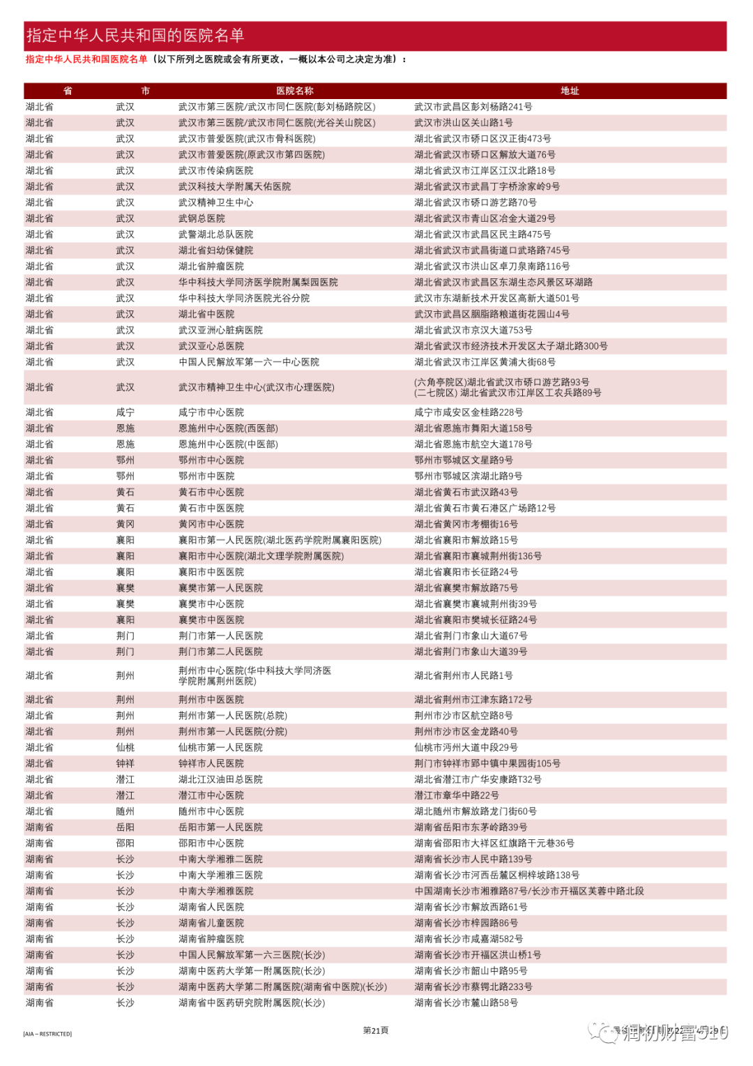 以下是香港友邦国内指定医院名单(只适用于高端医疗保障产品*) :