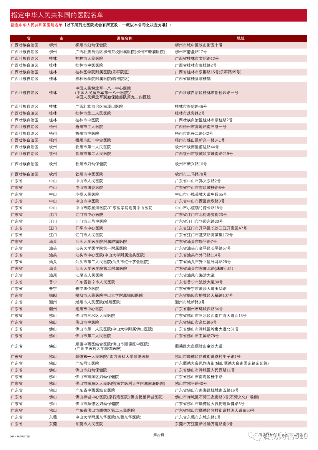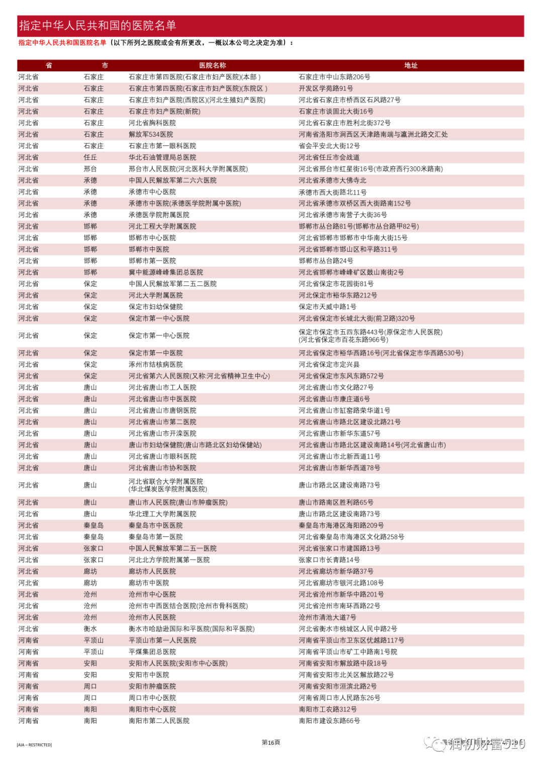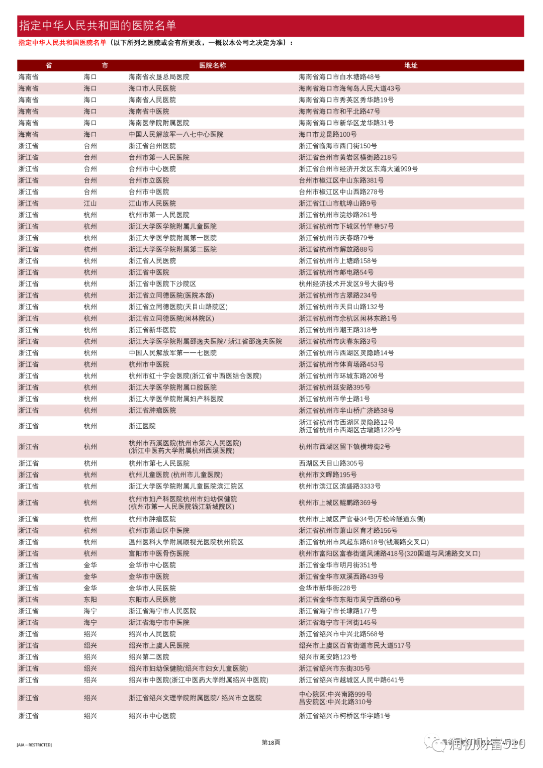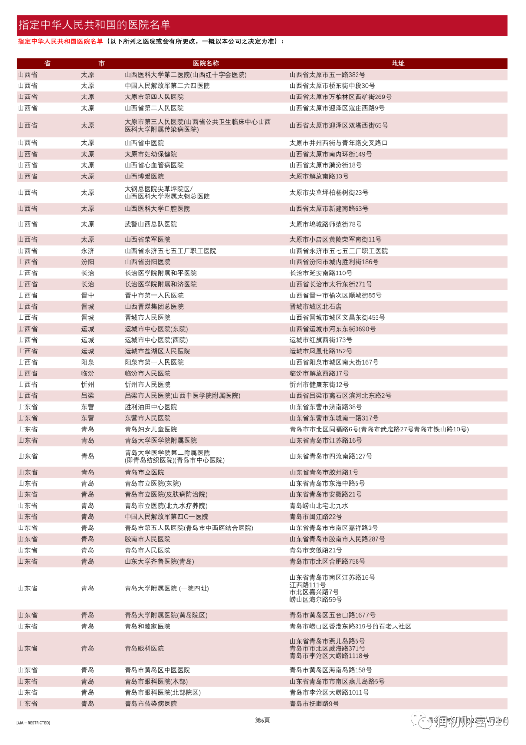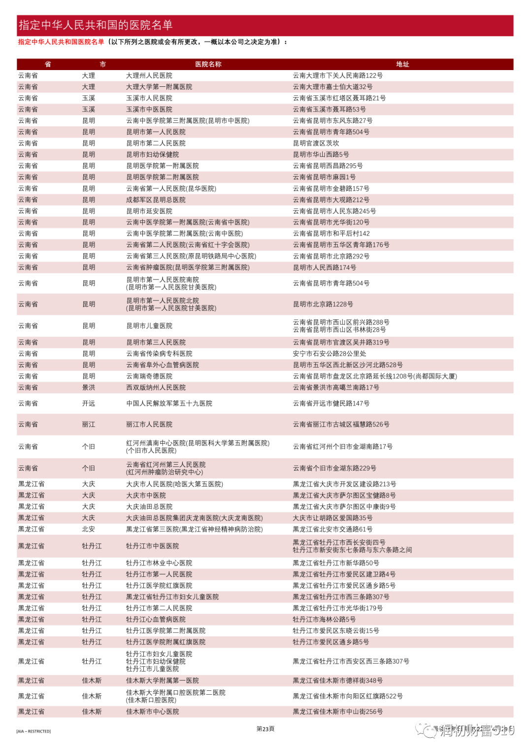 以下是香港友邦国内指定医院名单(只适用于高端医疗保障产品*) :