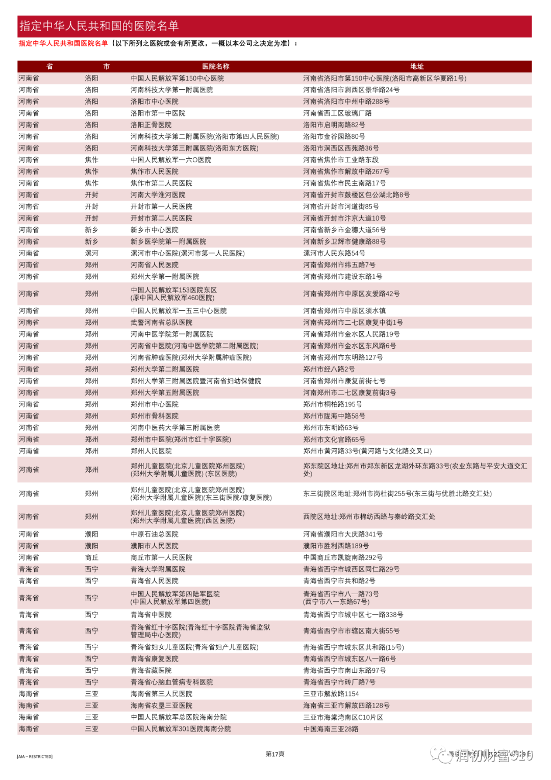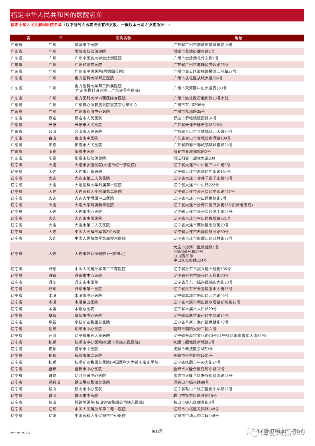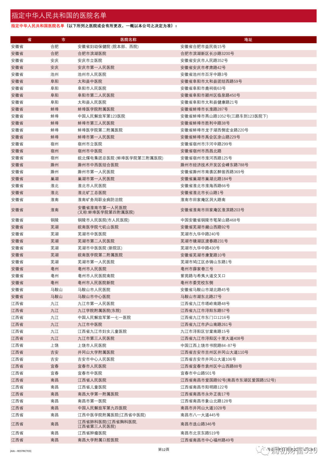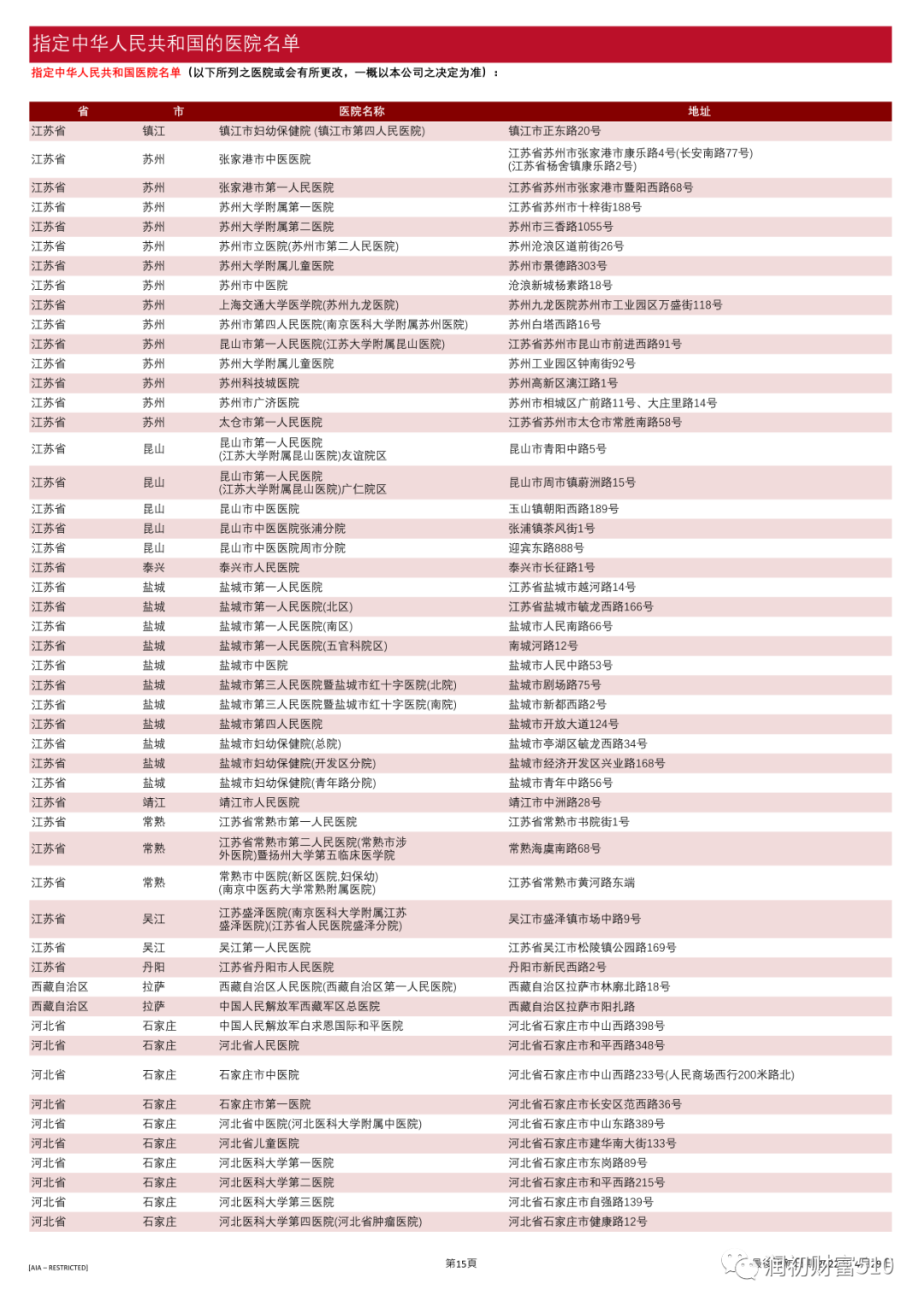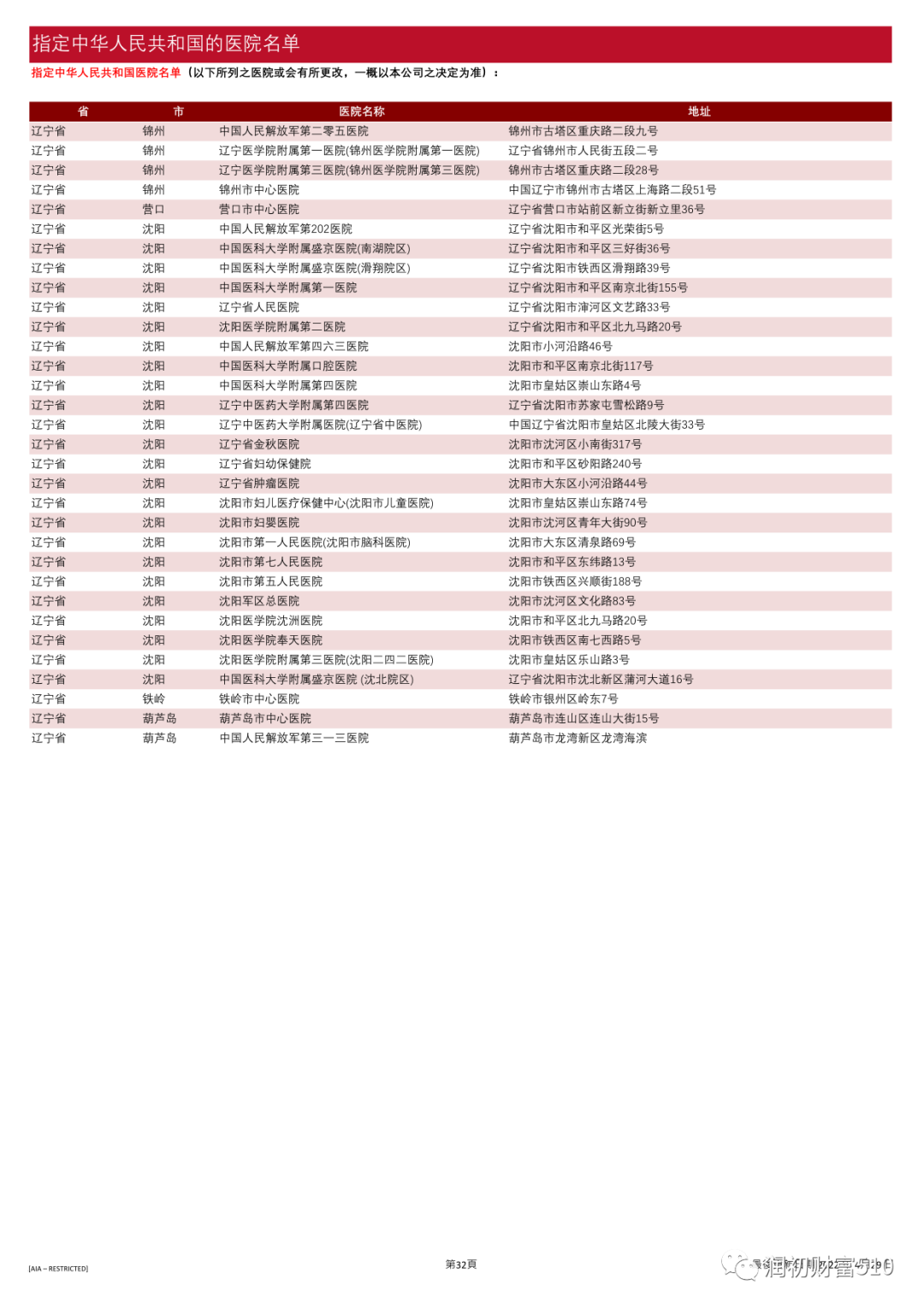 以下是香港友邦国内指定医院名单(只适用于高端医疗保障产品*) :