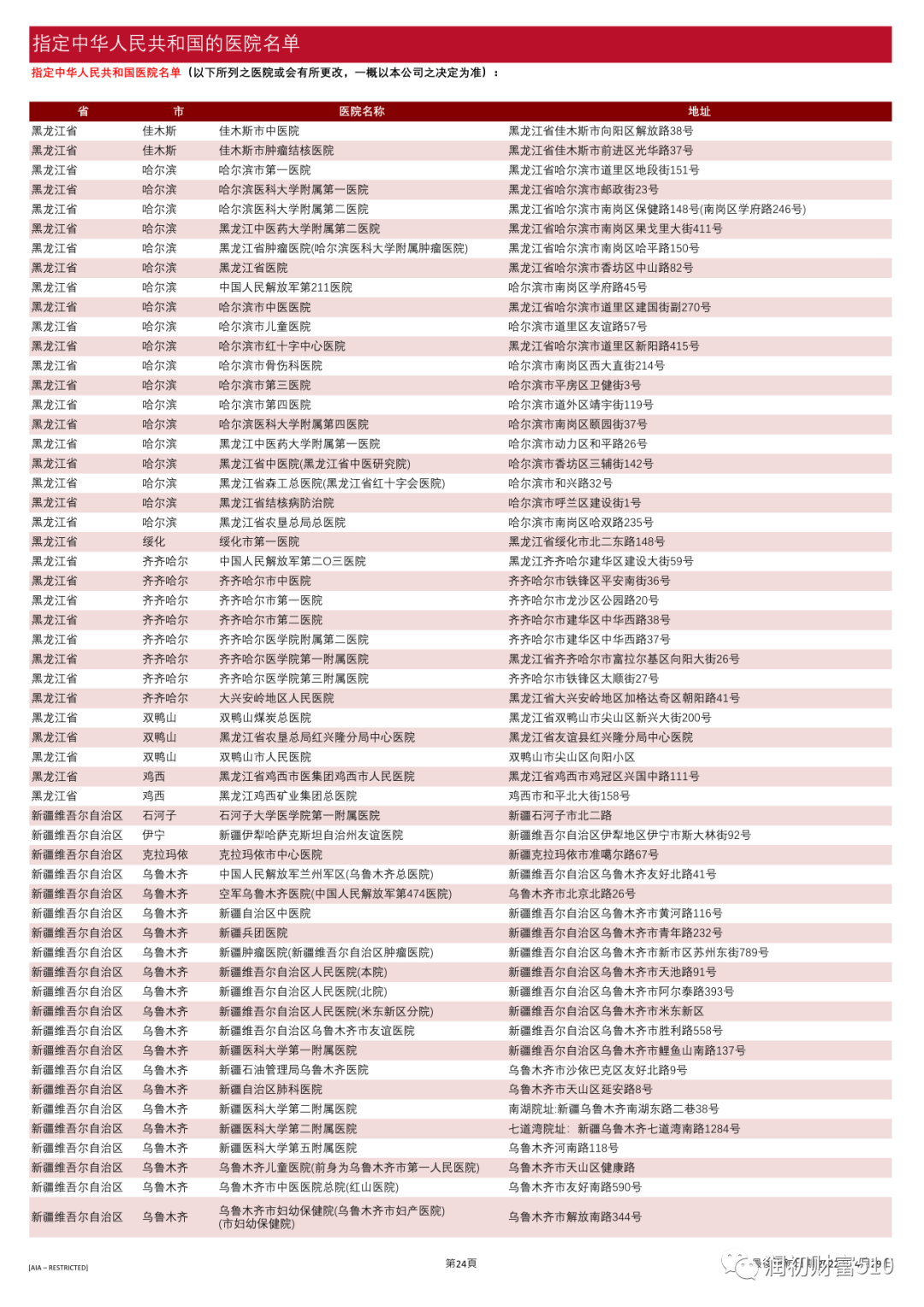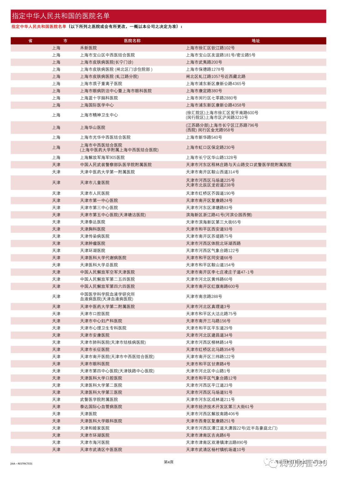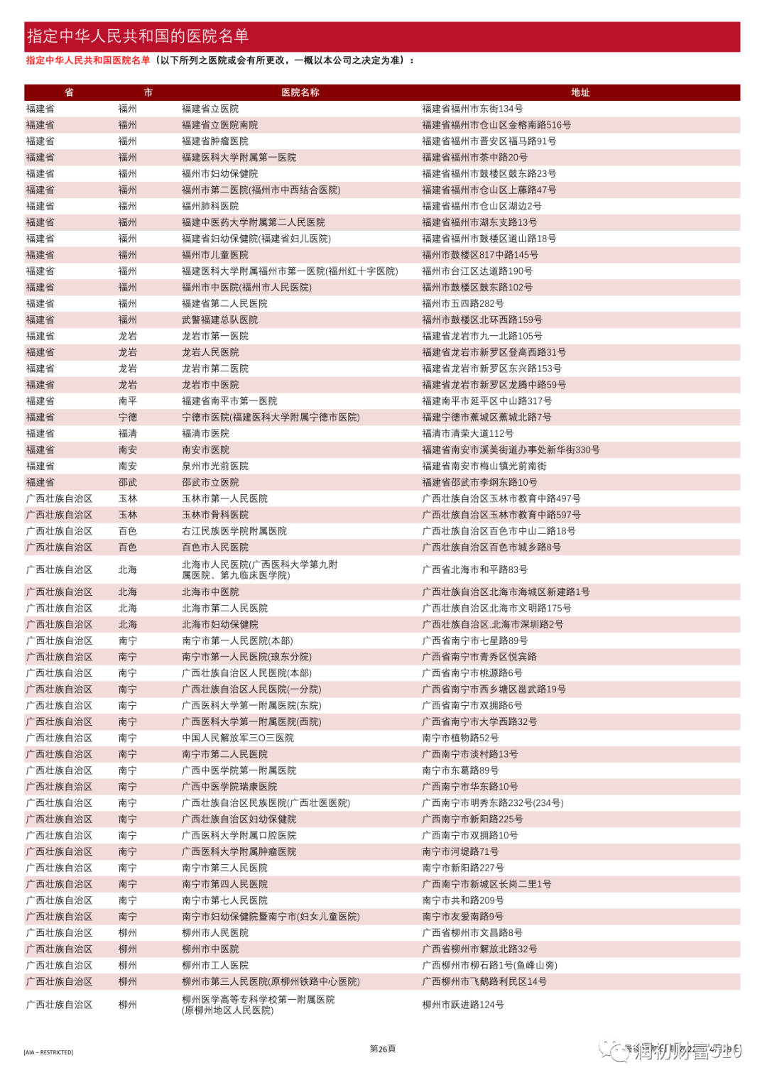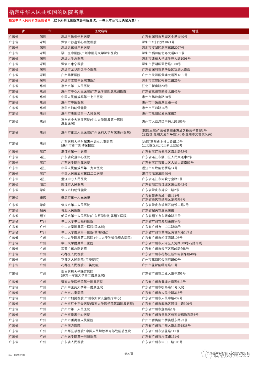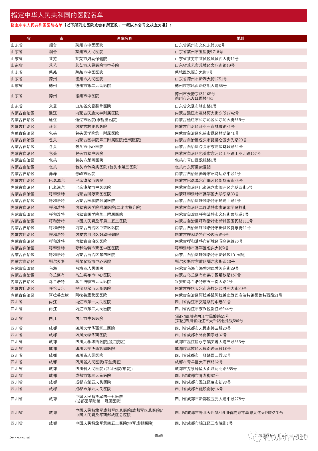 以下是香港友邦国内指定医院名单(只适用于高端医疗保障产品*) :