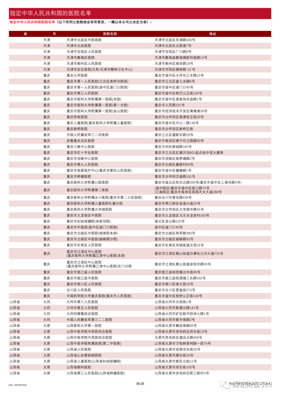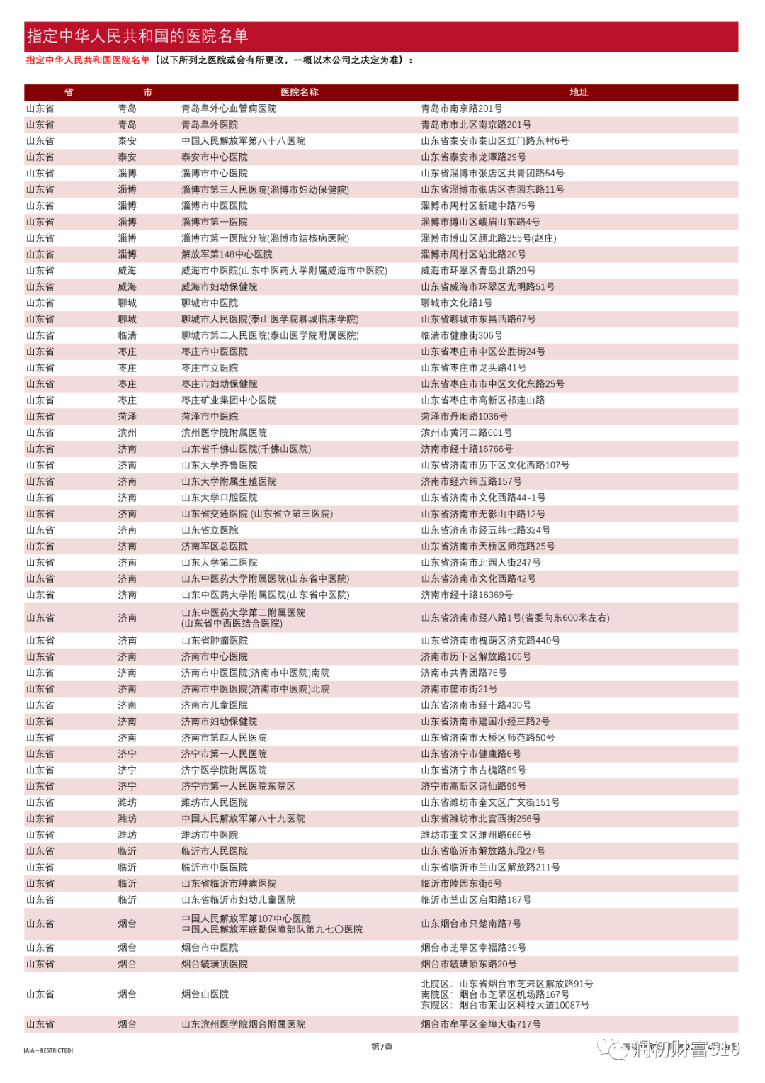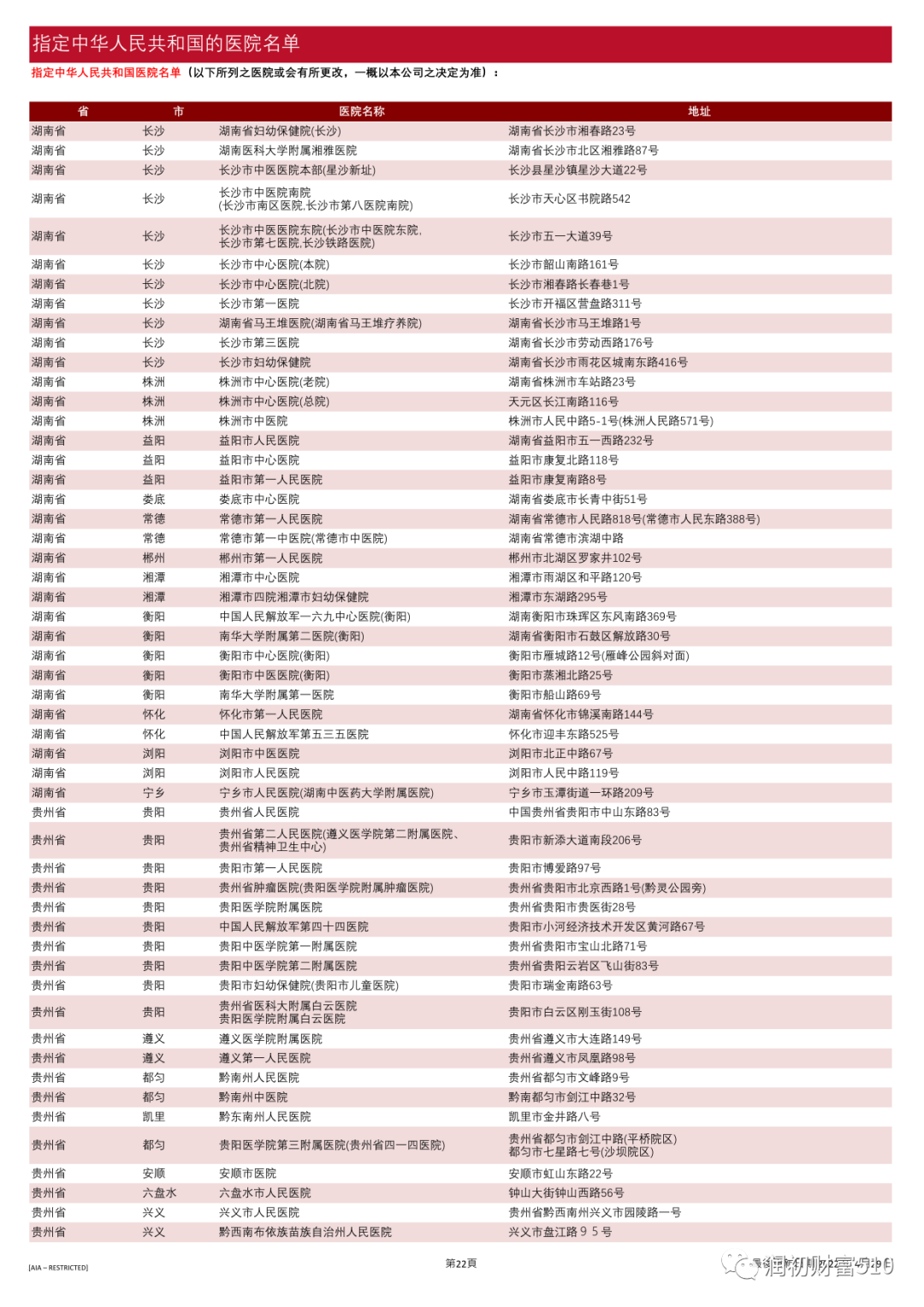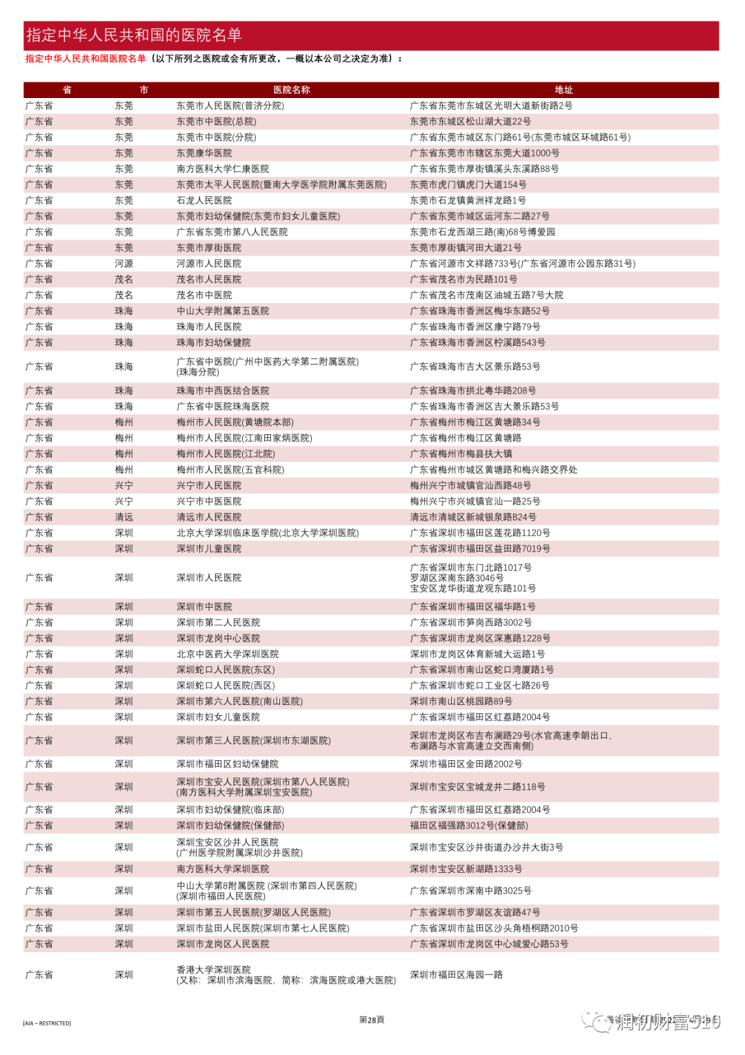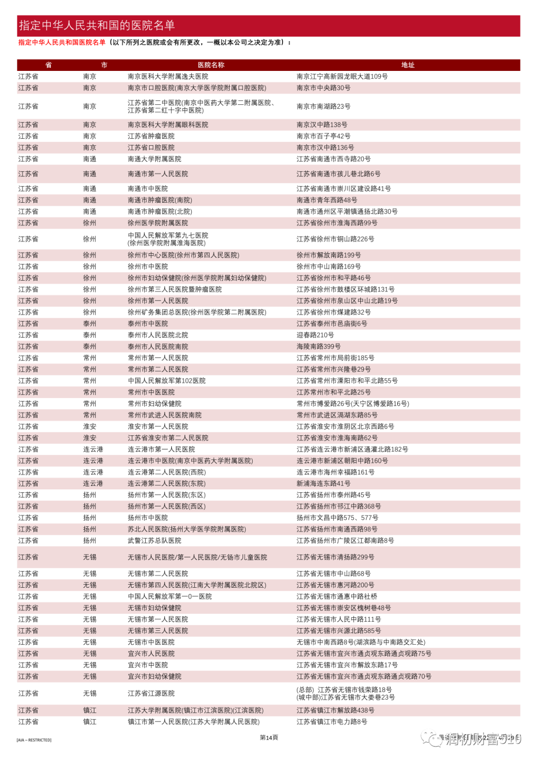 以下是香港友邦国内指定医院名单(只适用于高端医疗保障产品*) :